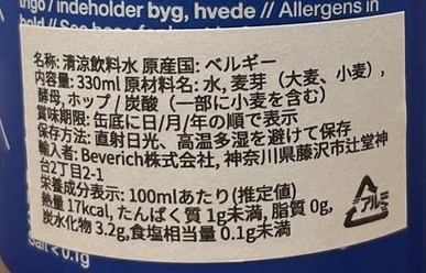 原材料は水、麦芽(大麦、小麦)、酵母、ホップ、炭酸になります。