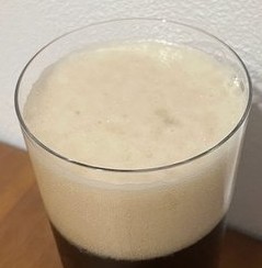 泡立ちはとてもよくクリーミーな泡が立ちです。色は黒ビールっぽくやや茶色に色味がかっています。